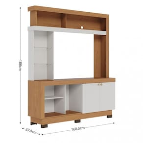 Apresentando um design tradicional, a Estante Valença oferece suporte para TVs de até 50 polegadas em sua espaçosa bancada. Equipada com três nichos inferiores e duas portas, esta estante proporciona amplo espaço para organizar seus objetos e aparelhos eletrônicos. Além disso, a Estante Valença possui nichos na parte superior e uma torre lateral com duas prateleiras de vidro, que não só adicionam beleza ao produto, mas também oferecem um espaço ideal para exibir seus itens de decoração favoritos.