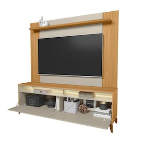 Características: Estrutura: MDP/MDF 2 Portas 1 Prateleira Dobradiças metálicas Puxadores em alumínio Com LED Peso suportado: 5 á 40kg Suporta TV até 55 polegadas Pés de madeira maciça