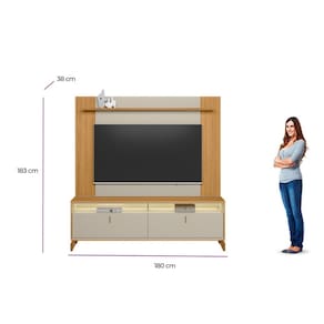 Características: Estrutura: MDP/MDF 2 Portas 1 Prateleira Dobradiças metálicas Puxadores em alumínio Com LED Peso suportado: 5 á 40kg Suporta TV até 55 polegadas Pés de madeira maciça