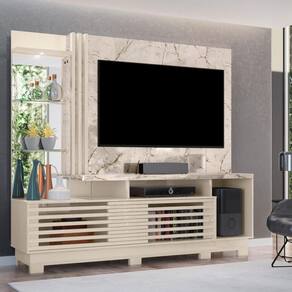 Características: 2 Portas 3 Prateleiras sendo 2 de vidro 5 mm Acabamento pintura UV Estrutura em MDP Luminárias de LED Painel em MDP de 15, 25 e 40mm Possui pés Portas deslizantes frisadas que se sobrepõem Possui espelho Puxadores poliestireno cromado Sistema de fixação girofix Suporta TV de 60 polegadas