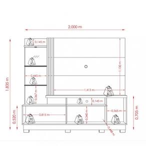 Dimensões: Altura: 183,5 cm Largura: 200 cm Profundidade: 45,5 cm Peso: 81,90 kg