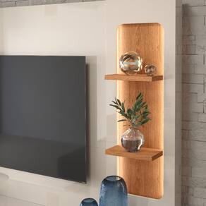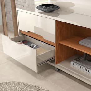 Estante Home Brise para TV até 70 Polegadas 1 Porta Correr 2 Gavetas e Rodízio Off White/Jequitibá - Lukaliam