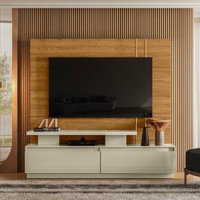 A estante home para TV modelo New Apolo é uma peça funcional e elegante, projetada para acomodar televisores de até 75 polegadas. Feita em MDP -Medium Density Particleboard-, a estrutura utiliza painéis com espessura de 15 e 40 mm, oferecendo robustez e durabilidade. As gavetas possuem corrediças telescópicas, que garantem um deslizamento suave e facilitam o acesso aos itens armazenados. O acabamento dos perfis é feito em Hot Stamping, proporcionando um visual sofisticado e resistente. A pintura é aplicada pelo método DIP, que assegura uma camada uniforme e durável. A estante é capaz de suportar um peso total de até 65 kg e conta com o sistema de fixação Girofix, que proporciona estabilidade e segurança à montagem.