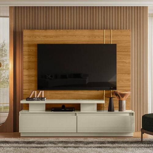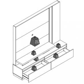 Características: 2 Gavetas grandes 1 Prateleira Corrediças telescópicas Estrutura em MDP Mini sapata 15x15 mm Painéis em MDP de 15 e 40mm Perfis com acabamento em Hot Stamping Peso total suportado 65 kg Pintura através do método DIP Sistema de fixação Girofix Suporte para TV de até 75 polegadas