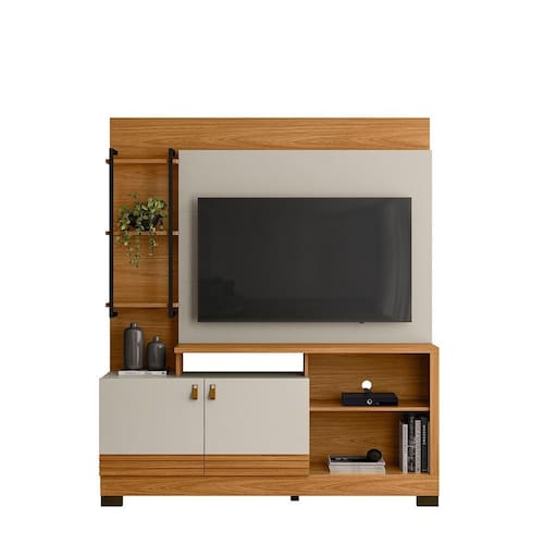 Design moderno e sofisticação são atributos da Estante Home Alagoas. Com painel para TV de até 50 polegadas, possui 4 prateleiras e 3 nichos para dispor decoração e aparelhos eletrônicos. Além de suas 2 portas de abrir com detalhes em ripado e puxadores de couro, a Estante Home Alagoas acompanha pés e ainda 2 hastes revestidas que dão um toque de requinte e modernidade ao ambiente Dimensões: Altura: 1,87 m Largura: 1,60 m Profundidade: 0,39m Peso Bruto: 57,35 kg