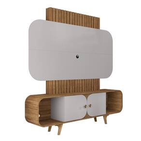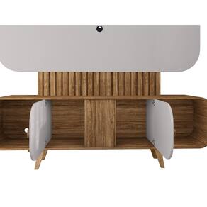 Estante Home Ripado para TV Até 75 Polegadas 2 Portas com Pés de Madeira Maciça Embaú Bechara - Cinza