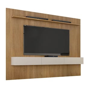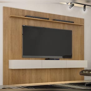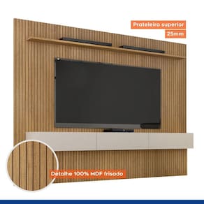 Estante Home Suspenso Frisado Para TV até 75 Polegadas Curitiba Valdemóveis Cinamomo/Off White - Marrom