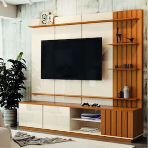 Estante Home Teather Reno é a escolha perfeita para elevar o estilo e funcionalidade da sua casa! O detalhe ripado garante sofisticação que transforma seu espaço em um ambiente moderno e convidativo. Conta com quatro prateleiras e três portas com amplo espaço interno para guardar todos os seus pertences. Acomoda TV até 75 polegadas. Feita com material de alta qualidade, dando durabilidade e resistência ao produto. MEDIDAS: A: 200,8 cm L: 218 cm P: 45 cm MODELO: Estante Home Teather Reno COR: Cedro/Off White MARCA: EDN ACABAMENTO: Pintura UV MATERIAL DA ESTRUTURA: MDP/MDF PORTAS: 3 TIPO DE PORTAS: Bater DOBRADIÇAS: Metálicas PRATELEIRAS: 5 PRATELEIRAS SUPORTAM ATÉ: 2kg ACOMODA TV ATÉ: 75 polegadas PESO SUPORTADO: 45 kg PESO: 91 kg GARANTIA: 3 meses pelo fabricante A Esplanada Móveis se responsabiliza pela entrega dos produtos adquiridos até a porta de entrada ou portaria do endereço indicado, se a portaria do condomínio permitir, as entregas são efetuadas no piso térreo e é de responsabilidade do cliente a locomoção da mercadoria até seu apartamento ou casa. Confira as dimensões do produto e certifique-se de que estão adequadas aos elevadores, portas e corredores do local da entrega. Não fazemos a montagem, desmontagem do produto e/ou portas e janelas, transporte pela escada ou içamento pelo lado de fora do prédio. Não está incluso no serviço de entrega o deslocamento até o interior do apartamento, com ou sem elevador, ou deslocamento em locais de difícil acesso como escadarias. Ean: 7898543577409