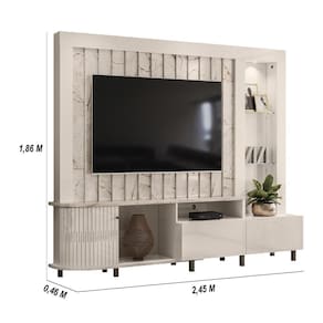 Material: MDP | Cor: Cumaru | Cômodo Indicado: Sala de Estar | Dimensões do Produto (A X L X P): 1,86 x 2,42 x 0,46 | Possui Prateleiras de vidro: Sim | Possui portas: Sim | Quantidade de portas: 1 | Tipo de Porta: Deslizante | Possui Gaveta: Sim | Quatidade de Gavetas: 2 | Tipo da Corrediça da Gaveta: Telescópicas | Possui LED: Sim | Possui Espelhos: Não | Possui pés: Sim | Quantidade de pés: 9 | Possui nichos: Sim | Peso do Produto (Kg): 101.7 | Altura do Produto (cm): 186 | Largura do Produto (cm): 242 | Comprimento do Produto (cm): 46 | Nome do Simples no Fornecedor: Home Theater Le Mans | Garantia do Fabricante: 90 dias | Instruções/Cuidados: Evite contato com líquidos. Nada de lavar os móveis. Móveis não gostam de umidade. Não deixe o móvel exposto ao sol. Os acessórios também precisam de limpeza. | Produto precisa de Montagem?: Sim, a montagem é simples mas sugerimos a contratação de algum profissional experiente de sua preferência | Material para Filtro: MDP | Material da Estrutura: MDP | Necessita Fixação na Parede: Não | Conteúdo Embalagem: Estante Home Theater Le Mans | Origem: Nacional | Estado de Origem: Paraná | Quantidade de Volumes: 3 | Comprimento x Largura x Altura (volume 01): 1,41 x 0,48 x 0,13 | Comprimento x Largura x Altura (volume 02): 1,84 x 0,37 x 0,10 | Comprimento x Largura x Altura (volume 03): 2,41 x 0,30 x 0,06 Cor: Calacata/Off White
