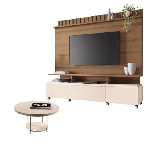 Estante Home Theater Artís Off White Castanho e Mesa de Centro Sky Off White – HB Móveis