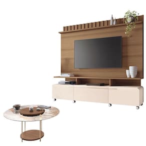 Estante Home Theater Artís Off White Castanho e Mesa de Centro Sky com Tampo de Vidro Castanho – HB Móveis