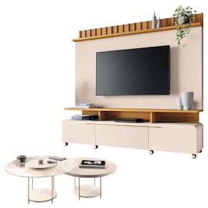 Estante Home Theater Artís Off White Cinamomo e Kit Mesa de centro Sky Off White – HB Móveis
