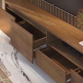 Apresentamos para você a moderna Estante Home Theater da linha Cancun fabricado pela Colibri é uma peça para adicionar design contemporâneo e funcionalidade ao seu ambiente. Produzido em MDP que garante mais durabilidade e resistência. O móvel destaca-se pelo painel ripado trazendo um toque sofisticado. Possuindo cinco nichos decorativos com led, uma boa opção para acomodar seus aparelhos eletrônicos e objetos. Com duas gavetas e dois gavetões são equipadas por corrediças telescópicas dando mais suavidade ao abrir e fechar as gavetas. Indicado para TVs de até 82 polegadas e com atenção aos detalhes será o destaque da sua sala de estar. Transforme sua sala e desfrute de um ambiente elegante e funcional. Confira e garanta o seu!