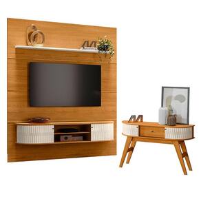 Estante Home Theater com Bancada Suspensa Bugatti com Aparador Estoril Cinamomo Off White – Madetec