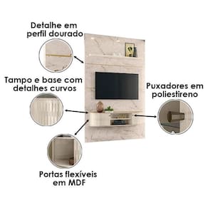 Estante Home Theater com Bancada Suspensa Monte Carlo Calacata Off White Madetec