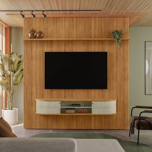 Estante Home Theater com Bancada Suspensa New Bugatti Ambiente Cumaru Opala - Madetec
