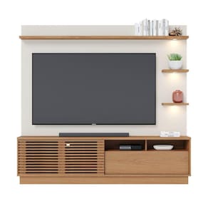 Uma ótima opção para quem busca por um móvel espaçoso e cheio de personalidade, o Home Theater Campeche possui um design clean e moderno. Com um painel para TVs de até 70 polegadas, possui três prateleiras superiores iluminadas por spots de Led, que trazem a sensação de tranquilidade e aconchego ao ambiente. Além disso, possui nichos internos e uma gaveta com corrediças telescópicas que são ideais para organização de aparelhos eletrônicos e demais objetos decorativos. Seu destaque fica por conta de sua porta deslizante ripada com brise que dão um toque especial do estilo contemporâneo ao móvel. Acabamento da Gaveta: Pintura UV Acabamento da Porta: Pintura UV Acabamento da Prateleira: Pintura UV Acompanha Lâmpada: 03 Ambiente Principal: Sala de Estar Complexidade da Montagem: Média: pode ser montado por mais de uma pessoa e/ou necessite de maior conhecimento para montagem Cor: Freijó/Off White Matte Cor do Produto: Freijó/Off White Matte Cor Interna: Freijó Escala de Brilho: Fosco Escala de Brilho da Porta: Fosco Escala de Brilho da Prateleira: Fosco Gaveta com Chave: Não Ideal para TVs até (Polegadas): 70 Itens Inclusos: 1 Home Theater, Kit Ferragens e Manual de Montagem Manual de Especificação Técnica: https://cdn2.madeiramadeira.com.br/atributo/colibri-moveis/1199798-croqui-3.pdf Manual de Montagem e Instalação: https://cdn2.madeiramadeira.com.br/atributo/colibri-moveis/1199797-manual-de-montagem-2-631.pdf Material da Gaveta: MDP Material da Porta: MDF/MDP Material da Prateleira: MDP Material dos Pés: Plástico Material Principal: MDP Necessita Montagem: Sim Origem do Produto: Nacional Peso: 91,08 kg Peso Máximo por Gaveta: 3 kg Peso Máximo por Prateleira: 1 kg Possui Espelho: Não Possui iluminação: Sim Possui Nichos: 05 Possui Pés: 08 Possui Portas: 01 Possui Prateleiras: 03 Possui Rodízio: Não Recomendações de Uso, Manutenção e Limpeza: Limpar utilizando apenas pano umedecido com água, nunca utilizar abrasivos ou esponjas de aço. Sapatas Niveladoras: Não Sistema de Montagem: Cavilhas, Parafusos e Cola Suporta Até (kg): 40 kg Tipo de Corrediça da Gaveta: Metálica Telescópica Tipo de Puxador da Gaveta: Embutido Tipo de Puxador da Porta: Embutido