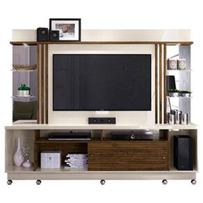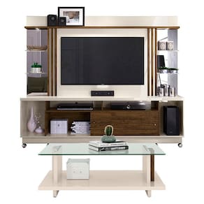 Estante Home Theater Frizz Gold com Rodízios Off White Savana – Madetec