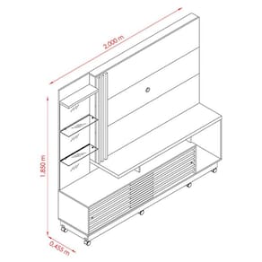Estante Home Theater Frizz Plus com Rodízios Calacata Off White - Madetec