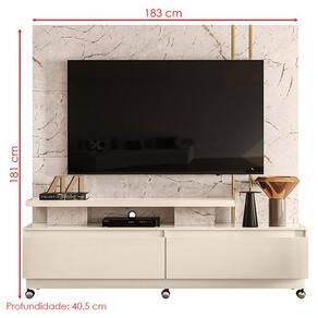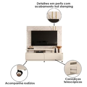 Estante Home Theater com Bancada New Apolo com Rodízios Calacata Off White – Madetec
