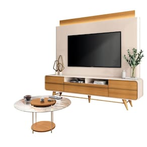 Estante Home Theater Nobre Off White Cinamomo e Mesa de Centro Sky com Tampo de Vidro Cinamomo – HB Móveis