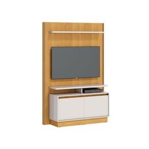 Estrutura em MDP 15 mm. Prateleira superior de 25mm. Rodapé 100mm com sapatas plásticas; 2 portas com dobradiças metálicas. Suporta TV de até 40\". Lindo móvel para ser utilizado na sala de estar ou quarto. Acabamento da Porta: Pintura Acabamento da Prateleira: Pintura Ambiente Principal: Sala de Estar Complexidade da Montagem: Média: pode ser montado por mais de uma pessoa e/ou necessite de maior conhecimento para montagem Cor: Marrom/Off White Cor do Produto: Marrom/Off White Cor Flex: Não Cor Interna: Marrom/Off White Escala de Brilho: Acetinado Escala de Brilho da Porta: Semi-Brilho Escala de Brilho da Prateleira: Semi-Brilho Ideal para TVs até (Polegadas): 50 Itens Inclusos: 1 Estante Home, Kit Ferragens e Manual de Montagem Linha ou Coleção: Fit Manual de Montagem e Instalação: https://cdn2.madeiramadeira.com.br/atributo/imcal/944220-home-fit-corrigido.pdf Material da Porta: MDP Material da Prateleira: MDP Material do Puxador da Porta: MDP Material Principal: MDP Montagem Flex: Não Necessita Montagem: Sim Origem do Produto: Nacional Peso: 49,5 kg Peso Máximo por Prateleira: 5 kg Possui Espelho: Não Possui iluminação: Não Possui Nichos: 02 Possui Pés: Não Possui Portas: 02 Possui Prateleiras: 01 Possui Vidro: Não Recomendações de Uso, Manutenção e Limpeza: Pano úmido Sistema de Montagem: Passa Fio, Parafuso, Cantoneira, Cavilhas, Girofix, Sapatas, Chapinnha e Dobradiças. Suporta Até (kg): 30 kg Tipo de Puxador da Porta: Embutido