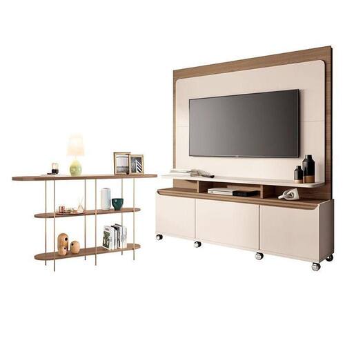 Estante Home Theater Quantum Off White Castanho - HB Móveis