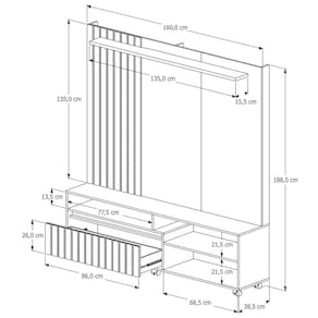O Home estante Havana é perfeito para deixar sua sala elegante e bonita. Produto com espaço para TV de até 65 polegadas, conta com uma gaveta e painel com detalhes em ripado real, proporcionando sofisticação. Contemporâneo seu design conta com espaços para acomodar aparelhos eletrônicos e ainda uma prateleiras para acomodar suas decorações preferidas. Conta com rodízios que facilita a limpeza e o deslocamento para acesso à tomadas. Seu tamanho compacto é ideal para você que busca requinte sem abrir mão da funcionalidade. Produto Montado: Sim Acabamento da Gaveta: Impressão Acabamento da Prateleira: Impressão Ambiente Principal: Sala de Estar codigo_ean: 7908561905426 Complexidade da Montagem: Alta: deve ser montado por um montador especializado Cor: Off White/ Freijó Cor do Produto: Off White/ Freijó Escala de Brilho: Semi-Brilho Escala de Brilho da Prateleira: Semi-Brilho Gaveta com Chave: Não Ideal para TVs até (Polegadas): 65 Itens Inclusos: 1 home + ferragens Manual de Montagem e Instalação: https://product-hub-prd.madeiramadeira.com.br/973747/documents/bc114919-cef0-4241-9aff-0e7f642894632623261391717363644512811.pdf Marca: Giga Móveis Material da Gaveta: MDF/MDP Material da Prateleira: MDF/MDP Material dos Pés: PVC Material Principal: MDF/MDP Necessita Montagem: Sim Peso: 61,14 kg Peso Máximo por Gaveta: 7 kg Peso Máximo por Prateleira: 7 kg Possui Espelho: Não Possui iluminação: Não Possui Nichos: 01 Possui Pés: 06 Possui Portas: Não Possui Rodízio: Sim Recomendações de Uso, Manutenção e Limpeza: Limpe Com Pano Levemente Umedecido Em Água. Nunca Utilize Produto Químico. Rodízio com Trava: Sim Sapatas Niveladoras: Não Sistema de Montagem: parafusos, girofix e cavilhas Suporta Até (kg): 45 kg Tipo de Puxador da Gaveta: Embutido Marca: Giga Móveis