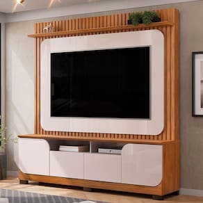 Transforme sua sala de estar em um verdadeiro cinema com a Estante Home Theater Ripado para 65 Pol Blog, da Lyam Decor. Com um design moderno e sofisticado, os detalhes foram intencionalmente projetados pensando nas últimas tendências de design, desde os cantos curvos, o tampo chanfrado e o ripado do painel. Já a funcionalidade fica por conta das quatro portas com amplo espaço interno, de modo que você terá espaço suficiente para guardar seus objetos e, assim, manter a bancada organizada; além dos dois nichos para aparelhos eletrônicos que ficarão devidamente instalados e com os fios escondidos, graças ao passa-fios, para que você desfrute o melhor entretenimento sem se preocupar com a bagunça. Para completar, o painel para é perfeito para telas de até 65 polegadas, o que deixará a sala de estar ainda mais bonita e convidativa. Gostou, não é mesmo?! Então, aproveite e transforme sua sala em um ambiente elegante com a estante Blog.