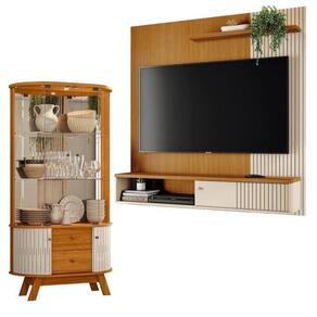 Estante Home Theater Suspenso Aurora com Cristaleira Moss Cinamomo Off White - Madetec