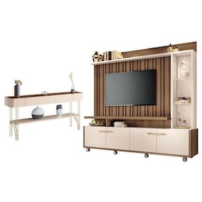 Estante Home Theater Titan Castanho Off White - HB Móveis
