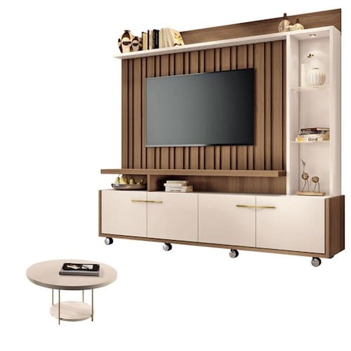 Estante Home Theater Titan Off White Castanho e Mesa de Centro sky Off White - HB Móveis