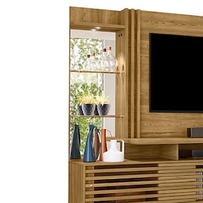 MDPEstante Home Frizz Plus, para transformar sua sala em um espaço moderno e funcional! Estrutura em MDP (base e painel 15/25 mm e tampo 40 mm) com acabamento em pintura UV texturizada. Suporta com segurança TVs de até 60 polegadas, conta com 2 portas de correr sobrepostas com frisos horizontais, nichos abertos, espelho lateral, 3 prateleiras (sendo 2 em vidro 5 mm) e luminária LED embutida. Também possui passa fios central. Este produto chegará em sua casa separado em 4 volumes.