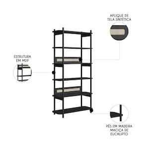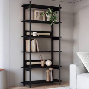 O Estante Industrial 6 Prateleiras Pés Madeira Arlo A10 Nero/Preto, da Mpozenato, é uma peça que combina funcionalidade e design sofisticado.