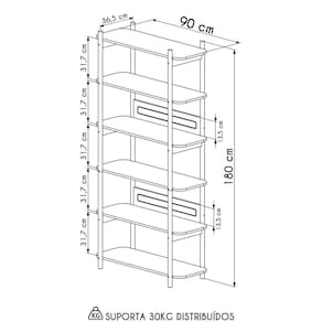 Fabricada com MDP de 15mm resistente, oferece durabilidade. O Livreiro Multiuso conta com pés de madeira maciça conhecida pela sua robustez, e incluem sapatas emborrachadas para proteger o piso de arranhões. Além disso, o acabamento BP não só realça a beleza natural do móvel, mas também oferece uma camada adicional de proteção contra o desgaste diário. Este Livreiro Estante não é apenas um item prático, mas também um elemento que adiciona um toque de elegância e modernidade ao espaço.