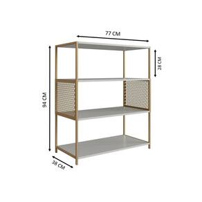 A estante média P1024 da Placa & Ponto possui um nicho com telas espandidas de metal nas laterais, estrutura metálica e prateleiras em MDP. Este produto além de poder colocar seus pertences e decorações, serve como decoração do seu ambiente. Otimize seu espaço com muito estilo e funcionalidade! Produto Montado: Sim Acabamento da Prateleira: Finish Foil Acabamento dos Pés: Pintura Altura dos Pés: 4 cm Altura Máxima dos Pés: 4.0000 Ambiente Principal: Sala de Estar codigo_ean: 7900288196873 Complexidade da Montagem: Média: pode ser montado por mais de uma pessoa e/ou necessite de maior conhecimento para montagem Cor: Arena / Dourado Cor do Produto: Arena / Dourado Escala de Brilho: Fosco Escala de Brilho da Prateleira: Fosco Espessura do Espelho: 0 mm Formato do Espelho: Oval Informações Complementares: distribuidos entre as prateleiras Itens Inclusos: 1 Estante, Kit Ferragens e Manual de Montagem Linha ou Coleção: P1024 Manual de Montagem e Instalação: https://product-hub-prd.madeiramadeira.com.br/427357622/documents/c35e2168-a357-4ffc-8d4f-7ac711746e803075303628917527472723822.pdf Marca: Placa e Ponto Material da Prateleira: MDP Material dos Pés: Metal Material Principal: MDP Montagem Flex: Não Necessita Montagem: Sim Origem do Produto: Nacional Peso: 16 kg Peso Máximo por Prateleira: 5 kg Possui Acabamento na Parte de Trás: Sim Possui Espelho: Não Possui iluminação: Não Possui Pés: 04 Possui Portas: Não Possui Prateleiras: Sim Possui Rodízio: Não Possui Vidro: Não Quantidade de Nichos: 03 Recomendações de Uso, Manutenção e Limpeza: Para a Limpeza do Móvel Utilizar Uma Flanela Seca. Sapatas Niveladoras: Não Sistema de Montagem: Parafusos Suporta Até (kg): 40 kg Tipo de Fixação do Espelho: Silicone