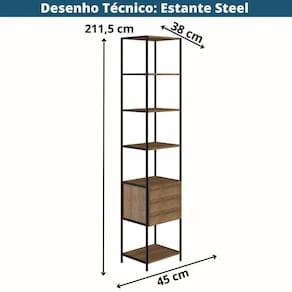 A Estante Industrial Steel da Artesano será a nova queridinha da sua casa! Fabricada em MDP BP 15mm, dobradiça metálica, costas MDF 3mm e estrutura metálica em aço de tubo 15x15mm com acabamento em pintura epóxi fosca. A estante Steel foi feita para caber perfeitamente com sua decoração, é ideal para quem quer ter um ambiente diferenciado. Ela consegue harmonizar os mais diversos ambientes garantindo elegância em qualquer cômodo em que escolher colocá-la. Tenha uma em sua casa!