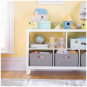 A estante infantil baixa Martha Stewart Living & Learning Kids’ Low Bookcase em Linen White foi desenvolvida para organizar livros, brinquedos e materiais diversos em quartos infantis, brinquedotecas e áreas de estudo. A peça oferece dois níveis de prateleiras frontais formando 5 nichos do tipo cubby, permitindo combinar livros expostos e itens armazenados em cestos de tecido inclusos.?