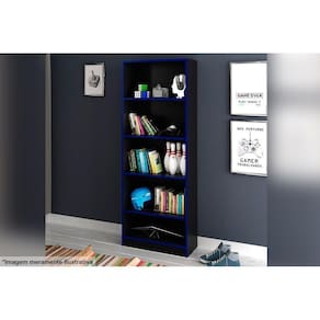 Estante Livreiro de Escritório ME4141 c/ 4 Prateleiras Preto/Azul - Tecno Mobili