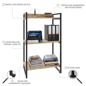Sobre o ProdutoEstante Kuadra 60X40X104cm C/03 Prateleiras Amadeirado / Est.PretaDescrição do Produto:A Estante Kuadra KUES63 tem montagem simples e versátil, podendo ser utilizada em diversas composições com outros móveis em diversos ambientes, como quarto e escritório, na sala, cozinha ou seu depó Linha Kuadra tem seu design com inspiração no estilo industrial, que remete muito a decoração usada nos Lofts das grandes metrópoles nos anos 60 e 70. Harmonizando o metal e os tons de madeira, foram projetados móveis versáteis e com estilo, que podem compor ambientes íveis cheios de personalidade, perfeitos para você decorar sua casa ou seu trabalho, tendo um resultado que caminha do estilo rústico ao Inclusos:1 EstanteDimensões dos Produtos:Estante Kuadra 60X40X104cm C/03 Prateleiras Amadeirado / 60 x 40 x 104 cmInformações Logísticas (Comp. X Prof. X Alt.) 103 x 41 x 11 cm - Peso: 12,01 KgPeso Total: 12,01 KgObservações:Não acompanha acessórios decorativos. Imagens meramente ilustrativas.Informações Técnicas / Características:- Cor do Produto: Amadeirado / - Marca: Compace- Modelo: KUES63- Linha: Kuadra- Material: Mdp- Material da Estrutura / Pés: Aço- Acabamento: BP Acetinado- Escala de Brilho: Fosco- Fita de Borda: Pvc- Possui Portas: Não - Possui Prateleiras: 3- Peso Máximo por Prateleira: 10 kg- Possui Pés: 2- Pés Niveladores: Sim - Acabamento Estrutura: Epóxi-Pó Texturizado - Suporta Até (kg): 30 kg- Comprimento: 60cm- Profundidade: 40cm- Altura: 104cm - Peso Lí.: 11,32Kg- Recomendações de Uso, Manutenção e Limpeza: Para a limpeza, utilize flanela seca ou pano macio levemente umedecido em água. Utilize um pano seco em seguida. Evite com produtos químicos (solventes, thinner, acetona, etc) e não utilize nenhum tipo de esponja de aço.- Necessita de Montagem: Sim / Acompanha Manual de Montagem- Complexidade da Montagem: Média: pode ser montado por mais de uma pessoa e/ou necessite de maior conhecimento para montagem.- Garantia: 6 meses Acabamento: BP Acetinado | Escala de Brilho: Fosco | Fita de Borda: Pvc | Material da Estrutura: Aço | Depth Front to Back: 40 cm | Acabamento da Estrutura: Epóxi-Pó Texturizado | Depth Height Floor to Top: 104 cm | Depth Width Side to Side: 60 cm | Quantidade de caixas de embalagem: 1 | Modelo: Estante Kuadra | Marca: Compace | Produto: Estante | Cômodo indicado: Escritórios | Cor: Multicolorido | Tonalidade: Multicolorido | Material: MDP | do modelo: KUES63 | Baterias são necessárias?: false | Palavras-chave de Pesquisa: Não Aplicável | da peça: KUES63 | de caixas: 1 | Componentes incluídos: Manual de montagem e kit acessórios | Fabricante: Compace | Quantidade de itens: 1 | Principais Características do Produto 0: Escritório | Certificação de teste externa: Não aplicável | Principais Características do Produto 1: BP Acetinado | Principais Características do Produto 2: Estrutura de aço | Exige montagem: true | Acabamento do móvel: BP Acetinado | Peso do item: ;unit=kilograms | Dimensões do item P x L x A: width#value=60;depth#unit=centimeters;height#value=104;height#unit=centimeters;depth#value=40;width#unit=centimeters | Recursos da Mesa: | Duração da Garantia: | Coleção de Antiguidade: | Tipo de Garantia: | Recursos da Escrivaninha: | Tipo de Mesa: | Desing da Escrivaninha: | País de Origem: | Móvel Dobrável: | Dimensões do Produto (A x L x C), sem a caixa de embalagem: | Montagem: | Base da Mesa: | Produto personalizado: | Motivo de Isenção Anvisa: | Data de validade Anvisa: | Tamanho Do Pacote: | Shape: | Formato da Escrivaninha: | Nr. do Lote do Produto: | Comprimento: | Altura da Mesa: | Código Anvisa do Produto: | Formato do Espelho: | de Assentos: | Qtd. de Produto no Lote: | Funcionalidades: | Temas de Estampas: | Estilo: | Quantidade: Cor: Carvalho /