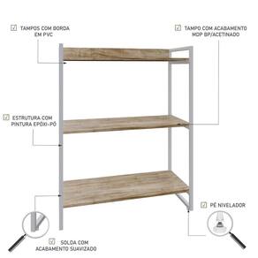 Sobre o ProdutoEstante Kuadra 80X40X104cm C/03 Prateleiras Amadeirado / Est.BrancaDescrição do Produto:A Estante Kuadra KUES83 é um produto prático e versátil, que pode ser utilizado em diversos ambientes, como quarto e escritório, na sala, cozinha ou seu depó Linha Kuadra tem seu design com inspiração no estilo industrial, que remete muito a decoração usada nos Lofts das grandes metrópoles nos anos 60 e 70. Harmonizando o metal e os tons de madeira, foram projetados móveis versáteis e com estilo, que podem compor ambientes íveis cheios de personalidade, perfeitos para você decorar sua casa ou seu trabalho, tendo um resultado que caminha do estilo rústico ao Inclusos:1 EstanteDimensões dos Produtos:Estante Kuadra 80X40X104cm C/03 Prateleiras Amadeirado / 80 x 40 x 104 cmInformações Logísticas (Comp. X Prof. X Alt.) 103 x 41 x 11 cm - Peso: 14,66 KgPeso Total: 14,66 KgObservações:Não acompanha acessórios decorativos. Imagens meramente ilustrativas.Informações Técnicas / Características:- Cor do Produto: Amadeirado / - Marca: Compace- Modelo: KUES83- Linha: Kuadra- Material: Mdp- Material da Estrutura / Pés: Aço- Acabamento: BP Acetinado- Escala de Brilho: Fosco- Fita de Borda: Pvc- Possui Portas: Não - Possui Prateleiras: 3- Peso Máximo por Prateleira: 10 kg- Possui Pés: 2- Pés Niveladores: Sim - Acabamento Estrutura: Epóxi-Pó Texturizado - Suporta Até (kg): 30 kg- Comprimento: 80cm- Profundidade: 40cm- Altura: 104cm - Peso Lí.: 13,97Kg- Recomendações de Uso, Manutenção e Limpeza: Para a limpeza, utilize flanela seca ou pano macio levemente umedecido em água. Utilize um pano seco em seguida. Evite com produtos químicos e não utilize nenhum tipo de esponja de aço.- Necessita de Montagem: Sim / Acompanha Manual de Montagem- Complexidade da Montagem: Média- Garantia: 6 meses