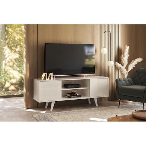 Estante Lisboa para TV até 55 polegadas - Calacata/Off White - Madetec
