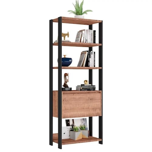 Se você gosta do objetivo e funcional, aestante livreiro é a personificação desse conceito! Ela possui estrutura em MDP e MDF de qualidade, com acabamento em pintura BP fosco que além de garantir durabilidade e resistência o produto, ainda contribui para um design moderno noestilo industrial! Inclusive, conta com 4 prateleiras formando nichos para colocar seus objetos e 1 porta basculante! Me diz, essaestante é um complemento imperdível né?