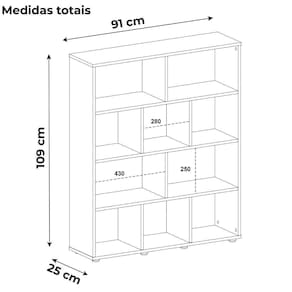 Design funcional que se adapta a diferentes ambientes, trazendo charme e organização para seu lar. Estrutura em MDP/MDF de 15 mm, com 10 nichos distribuídos (4 com fundo fechado e 6 abertos), cada um suportando até 3 kg. Conta com 8 sapatas em plástico ABS e acabamento em pintura UV texturizada (fosco). Produto entregue em 01 volume.