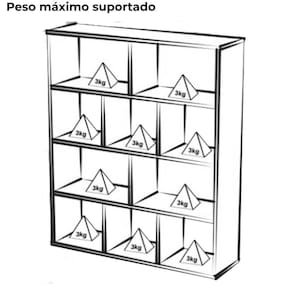 Peso máximo suportado: 30 kg (3 kg por nicho)