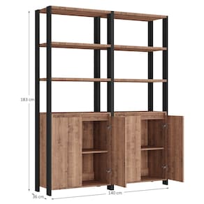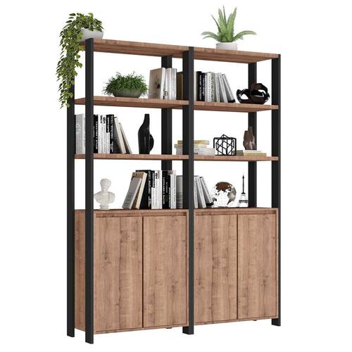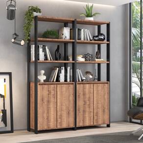 estilo industrial! Inclusive, conta com 8 prateleiras formando nichos para colocar seus objetos e 4 portas convencionais de dobradiças com amortecedor! Me diz, essa