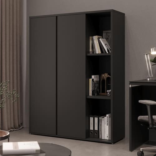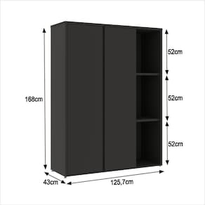 Ambiente Principal: Sala de Estar | Largura: 125,7 cm | Complexidade da Montagem: Média | Pessoas necessárias para montagem: 1 | Altura: 168 cm | Profundidade: 43 cm | Suporta até: 30 kg | Possui iluminação Não | Peso 72 kg | Origem do produto | Necessita montagem: Sim | Possui portas: Sim | Possui gavetas: Não Possui Gavetas | Quantidade de caixas de embalagem: 2 | Possui prateleiras?: Possui 9 prateleiras | Possui nichos?: Não Possui Nichos | Possui espelhos?: Não Possui Espelhos | Possui vidro?: Não Possui Vidro | Modelo Tundra; Estante; Armário; Sala de Estar; Escritório; Royal; | Marca: ViaNossa; ViaNossa Móveis; EDN Móveis; Tundra; Royal | Material: MDP e MDF | Formato do móvel: Armário | Acabamento Pintura UV | Tempo de garantia: 3 meses | Tipo de garantia: Fabricante | Inclui manual de montagem: Sim Preto