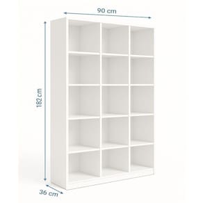 Com 15 nichos, a Colméia Bia oferece versatilidade para acomodar uma variedade de produtos, desde roupas e acessórios até itens de decoração. Seu design inteligente maximiza a utilização do espaço, tornando-a perfeita para ambientes comerciais de diferentes tamanhos. Acabamento da Prateleira: Finish Foil Ambiente Principal: Escritório Armário Suspenso: Não Complexidade da Montagem: Média: pode ser montado por mais de uma pessoa e/ou necessite de maior conhecimento para montagem Cor: Branco Cor do Produto: Branco Cor Interna: Branco Escala de Brilho: Semi-Fosco Escala de Brilho da Prateleira: Semi-Fosco Espessura do Tampo: 15 mm Formato do Armário: Retangular Itens Inclusos: 1 Estante Livreiro, Kit Ferragem e Manual de Montagem Linha ou Coleção: Expositores Localização do Nicho: Nicho em Cima Manual de Montagem e Instalação: https://product-hub-prd.madeiramadeira.com.br/567000443/documents/a03e4777-5ddf-4958-a374-44e206a0b2e13143328612417553584368093.pdf Marca: Móveis Menezes Material da Prateleira: MDP Material Principal: MDP Necessita Montagem: Sim Orientação do Armário: Vertical Origem do Produto: Nacional Peso: 30 kg Peso Máximo por Prateleira: 5 kg Possui Espelho: Não Possui Mesa Retrátil: Não Possui Nicho: Sim Possui Pés: Não Possui Portas: Não Possui Prateleiras: 12 Quantidade de Armários: 1 Recomendações de Uso, Manutenção e Limpeza: não molhar, usar pano seco para limpeza. Sapatas Niveladoras: Não Sistema de Montagem: parafusos Suporta Até (kg): 74 kg Tamanho do Armário: Alto (Acima de 150cm) Tipo de Armário: Semi-Fechado Marca: Não Informado