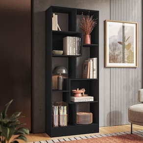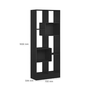 Estante Livreiro Com 8 Nichos Preto Fosco - Qmovi Preto Fosco Estante Livreiro com 8 Nichos - Qmovi A Estante Livreiro com 8 Nichos é um produto multifuncional, ideal para decorar e organizar diversos ambientes. Com um design moderno, composto por seus nichos de formatos diferenciados, ele leva beleza e praticidade ao seu espaço. O produto possui sistema antitombamento, que garante segurança e evita riscos de acidentes. ESPECIFICAÇÕES: - Estrutura em MDP - Pintura UV - 8 Nichos - Sistema antitombamento para evitar riscos de acidentes - Nichos com tamanhos variados para organização de objetos e decorações - Ideal para colocação de livros e objetos decorativos - Multifuncional, pode ser utilizado em diversos ambientes