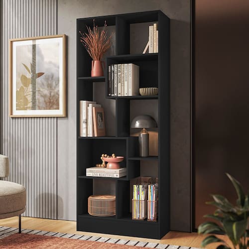 Estante Livreiro com 8 Nichos Preto Fosco Qmovi